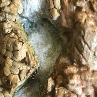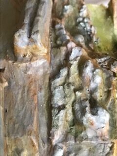 Vous pouvez déposer des micro touches de peinture oranges, ocres et rouges pour simuler les lichens sur les rochers. Ces organismes sont très répandus dans nos environnements et présentent des nuances variées.