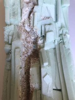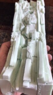La structure a été constituée à partir d’un morceau de polystyrène extrudé. Cette méthode a été présentée en détail dans cet article et nous ne reviendrons pas sur cet aspect de la réalisation. Il vous faudra juste prendre garde à repérer et constituer un parcours crédible pour le ruisseau. Assurez vous par ailleurs de l’étanchéité de votre parcours sans quoi votre résine s’épanchera…