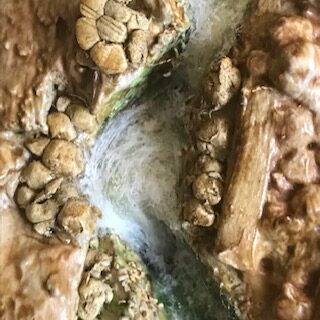 Une fois les couches de résine totalement sèches, vous pouvez rajouter des couches de coton pour obtenir l’effet que vous recherchez. Il faut néanmoins aussi parvenir à distinguer le flux du ruisseau. Après quelques tâtonnements, vous y parviendrez. Vous pouvez fixer les couches de coton supplémentaire avec des micro gouttes de vernis brillant.