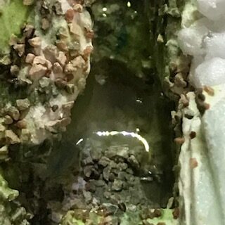 Vous pouvez compléter votre fond de ruisseau par des graviers que vous collerez avec un peu de colle blanche, de Gesso ou un médium acrylique dilué. Là aussi, en toute rigueur, il faudrait prendre des couleurs et des natures de graviers correspondant au site reproduit. Ces ajouts permettent de rompre la monotonie et accentuent l’illusion. Vous pouvez aussi utiliser des micro billes contenues dans les cartouches d’eau filtrantes.