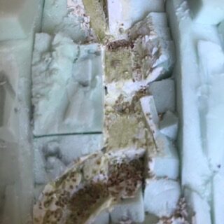 Une photo en gros plan pour vous montrer une étape intermédiaire. Comme vous pouvez le constater la cavité n’est pas encore remplie et nous avons ultérieurement coulé d’autres couches de résine.