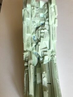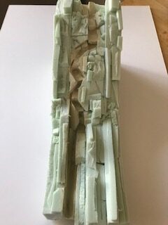 Nous l’avons fait ultérieurement dans le projet mais nous vous recommandons à ce stade de compléter votre réalisation par des morceaux de polystyrène expansé dont les formes rondes constituent un bon complément aux formes plus droites de l’extrudé. Bien entendu, vous pourrez vous guider de photos d’un site réel le cas échéant.