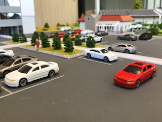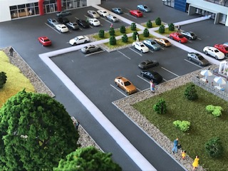 Celui-ci a fini par être convaincu que ces ajouts aéraient la maquette et coupaient à bon escient la masse grise des routes et parkings.