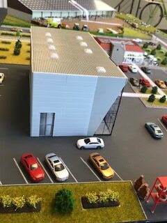 Nous sommes sollicités de temps en temps pour réaliser des maquettes à vocation promotionnelle. La plupart du temps, il s’agit de mettre en valeur le savoir-faire d’une entreprise. La maquette est alors exposée dans des salons professionnels ou dans des expositions accessibles au grand public. Il nous a semblé intéressant d’évoquer la façon dont ce genre de projet peut être traité, notamment lorsque que le cahier des charges n’est en rien centré sur le réalisme mais sur la mise en valeur du métier de l’entreprise. Nous avions déjà évoqué dans cet autre article la question des nécessaires compromis dans le modélisme. Le présent article va retracer la gestion de ce type de projet, moins modélistique et davantage promotionnel. Les « compteurs de rivets » feront valoir qu’il ne s’agit pas de modélisme. Nous sommes d’accord, il ne s’agit pas de modélisme d’atmosphère ou visant à l’exactitude d’un lieu ou d’un moment de la culture ferroviaire, pas de trains ou même de voies ferrées dans ce projet. Il s’agit néanmoins d’un projet de réduction à l’échelle HO d’un lieu fictif.