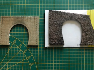 Deux entrées de tunnel à l’échelle HO. Celle de gauche est une production issue de la découpe laser et celle de droite est une production industrielle issue d’un moulage en résine. Vous pouvez aisément constater les différences.