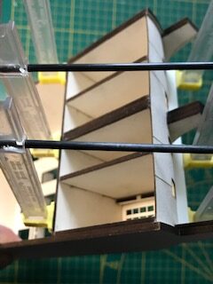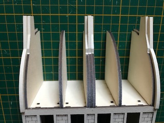 Et de même avec les deux pièces (carton bois de 1.5 mm) du balcon du 2ème étage et les 4 petits balcons du 3ème étage.