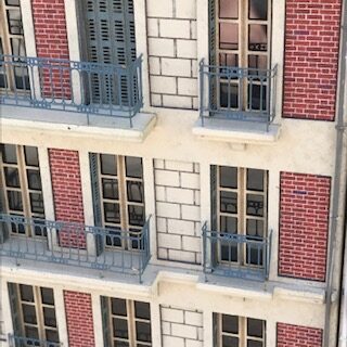 Nous fournissons dans ce kit des ferronneries spécialement crées pour cet immeuble. Elles sont directement inspirées de modèles réels et sont donc particulièrement réalistes. Nous avons fait le choix d’une grande finesse et il faut donc les manipuler avec précaution.