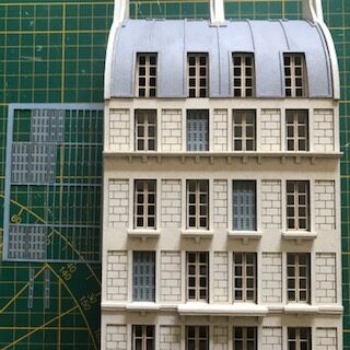 Ces modèles sont en demi relief, particulièrement indiqués pour les parois de fond ou de côté de vos modules ou réseaux. Les techniques de montage sont simples et requièrent essentiellement de la colle blanche, un cutter, une lime et un réglet. Les pièces sont pré-découpées avec précision au laser et s’ajustent parfaitement. Selon les modèles, vous trouverez dans le set des planches de carton bois de 3 mm, 2,2 mm, 2 mm, 1.5 mm, 1 mm, 0.75 mm et des feuilles de détaillage permettant la réalisation des huisseries et des persiennes. Des indications précises sont données pour le montage, la peinture et la patine les cas échéants. Les notices sont suffisamment claires et détaillées pour vous guider et le montage est relativement similaire quelque soit l’immeuble. Les cas particuliers – souvent des éléments de détaillage spécifique à un immeuble – sont indiqués au cas par cas. Nous vous recommandons de lire l’intégralité de la notice avant de commencer les travaux. N’hésitez pas à nous contacter à l’adresse contact@cheminsdereves.fr si jamais vous aviez une hésitation. Nous nous ferons un plaisir de vous renseigner.