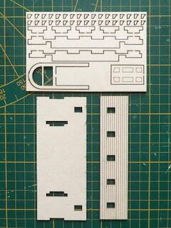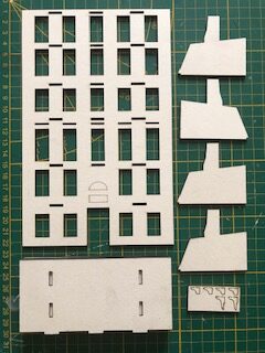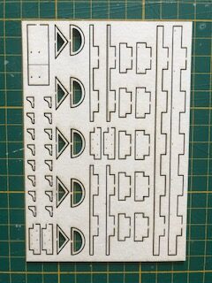 Les planches de 1.5 mm ci-contre regroupent diverses pièces devant composer certains balcons, des éléments de détail supportant les balcons et les bases de toitures.