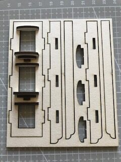 Il doit vous rester trois murs sur une des planches de 2.2 mm. Des portes sont gravées sur une des faces des murs latéraux.