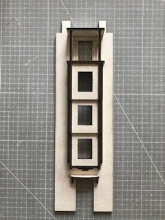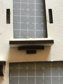 Si vous ne l’avez pas déjà fait, prélevez les supports des autres fenêtres sur la plaque de 1 mm et collez les en place sur la façade.