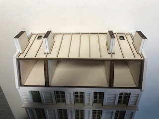 Enfin, vous installerez le balcon filant au dernier étage par superposition des deux pièces de 1 mm.