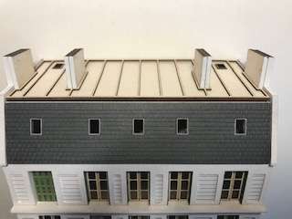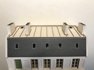 Le haut de la toiture sera peint dans une couleur grise évoquant le zinc. Elle pourra être collée en place une fois la peinture sèche.