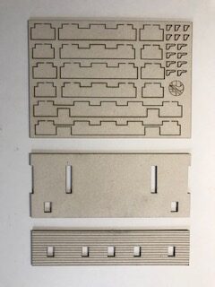 Vous trouverez plusieurs planches de 2.2 mm avec le support de la façade avant, les supports et planchers, et diverses pièces de modénatures (ci-dessous).