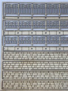 Ce set comprend 3 longueurs de barrières de 18 cms chacune : 1 haute et 2 moyennes, ces deux dernières à installer sur un petit muret qui est fourni dans le kit. Cela permet d’offrir de la variété aux décors tout en gardant la cohérence d’un design identique. Pour le montage, la décoration et la mise en œuvre de ces barrières, nous vous invitons à consulter cette page. Il est possible d’adapter la hauteur des murets en les recoupant.