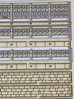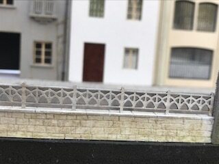 Ce set comprend 3 longueurs de barrières de 18 cms chacune : 1 haute et 2 moyennes, ces deux dernières à installer sur un petit muret qui est fourni dans le kit. Cela permet d’offrir de la variété aux décors tout en gardant la cohérence d’un design identique. Pour le montage, la décoration et la mise en œuvre de ces barrières, nous vous invitons à consulter cette page. Il est possible d’adapter la hauteur des murets en les recoupant.